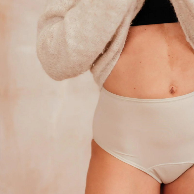 The Coni Cream is a super high waisted knicker you can wear on medium flow days. These knickers have same comfortable high waist and VPL-free scalloped edge as the Coni black, but with a slightly thicker gusset for even more leak-free protection.