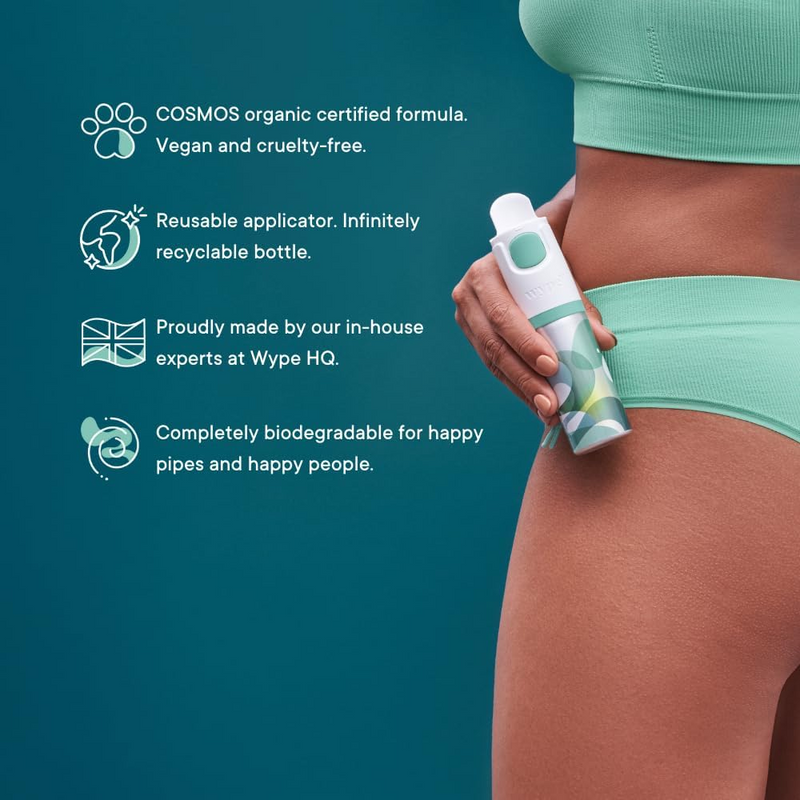 Wype’s toilet paper gel glides smoothly onto your toilet tissue without breaking it down and instantly turns toilet paper into an eco-friendly wet wipe. Organic? Tick. Vegan? Tick. Cruelty Free? Always.
